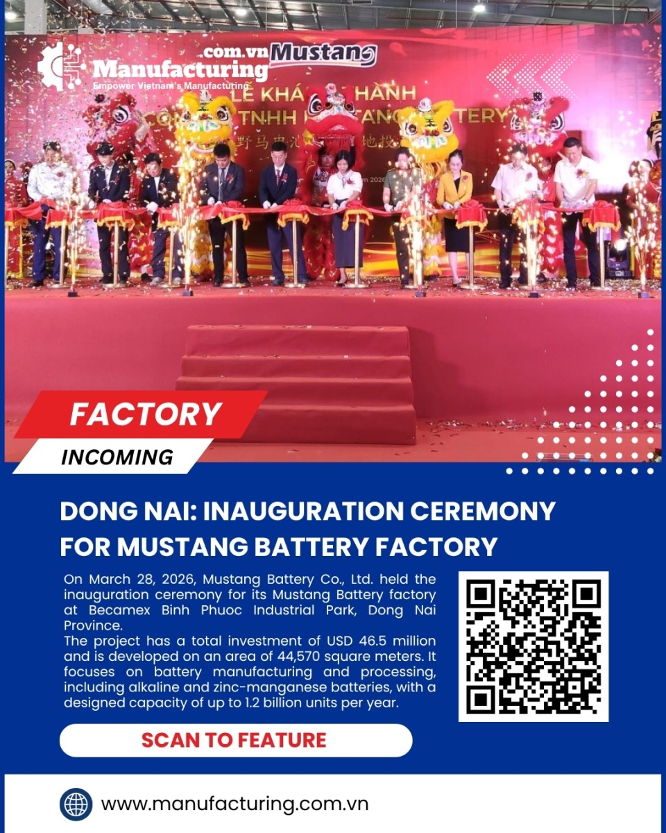 On March 28, 2026, Mustang Battery Co., Ltd. held the inauguration ceremony for its Mustang Battery factory at Becamex Binh Phuoc Industrial Park, Dong Nai Province.