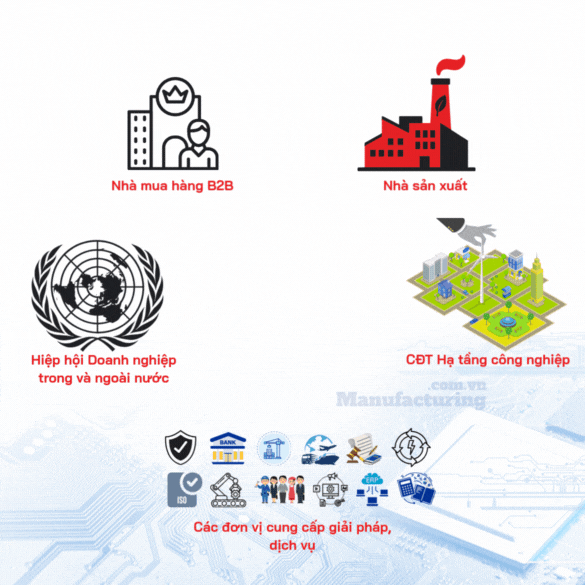 Chúng tôi kết nối người mua – nhà sản xuất – nhà cung cấp dịch vụ – các khu công nghiệp – Hiệp hội doanh nghiệp trong và ngoài Việt Nam, tất cả trên một nền tảng rõ ràng.