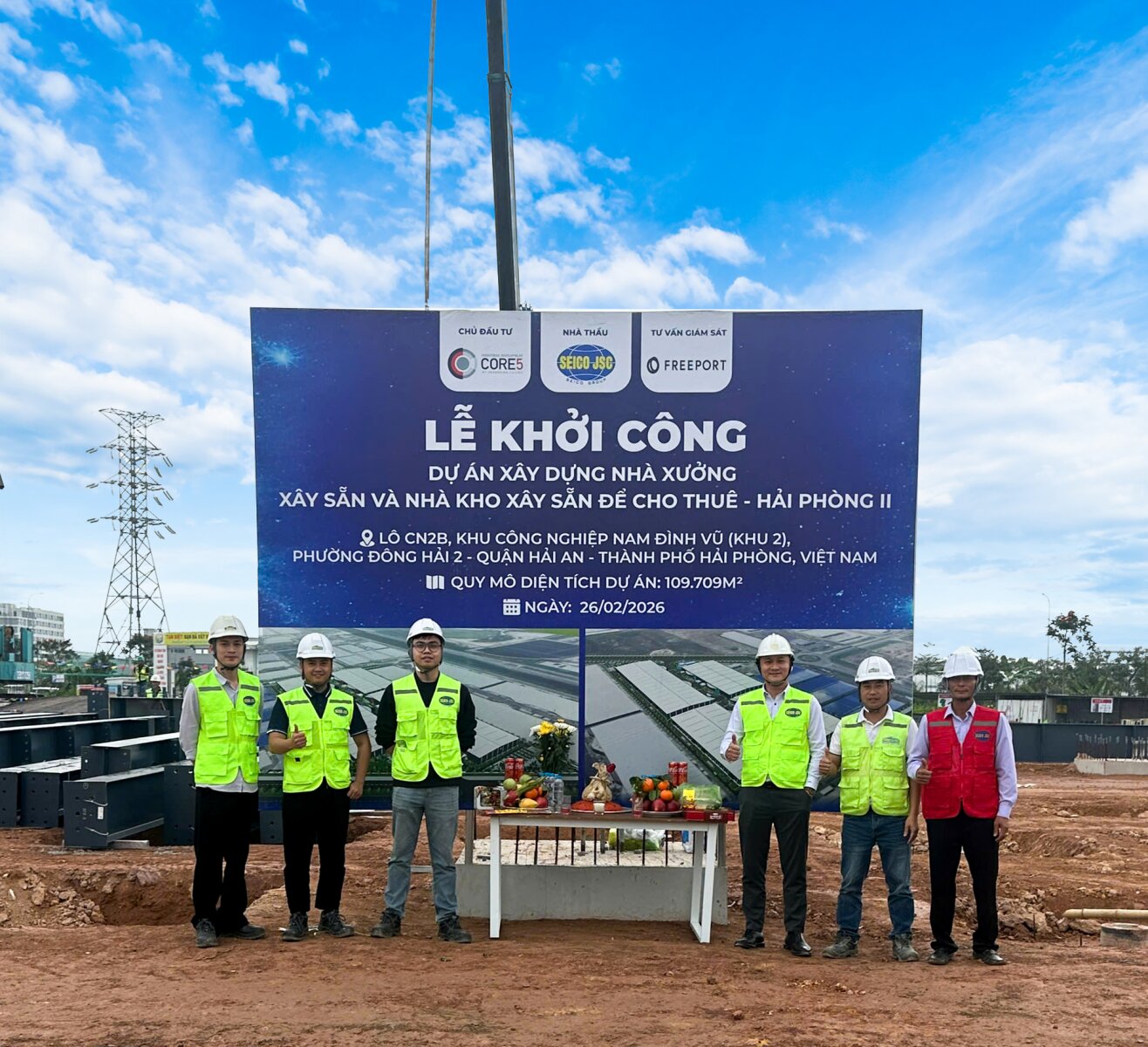 On February 26, 2026, the groundbreaking ceremony for the ready-built factory and warehouse project was held at Lot CN2B, Nam Dinh Vu Industrial Park (Zone 2), Dong Hai 2 Ward, Hai An District, Hai Phong City.